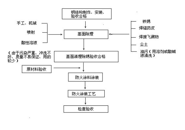 应由经批准的施工单位负责施工,检查资质批准文件。对钢构件碰损或漏刷部位应补刷防锈漆两遍,经检查验收方准许喷涂。喷涂前将操作场地清理干净,靠近门窗、隔断墙等部位,用塑料布加以保护。